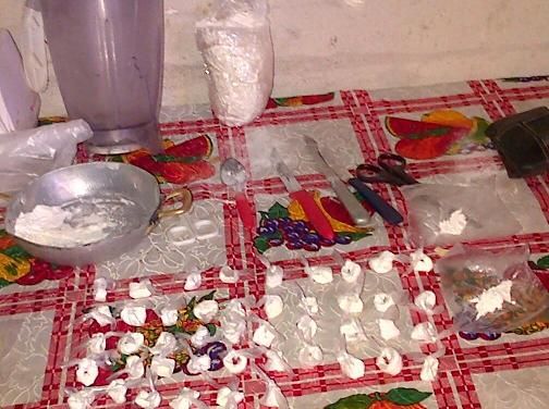 Tras varios meses de investigación los uniformados allanaron la casa y lograron secuestrar 300 gr. de Cocaína, 45 envoltorios de nylon (bochitas) que se encontraban listas para su comercialización. También se encontró en el lugar, material de "corte” tales como utensilios de cocina, una licuadora, recortes de nylon y $2.000 en billetes de baja denominación.