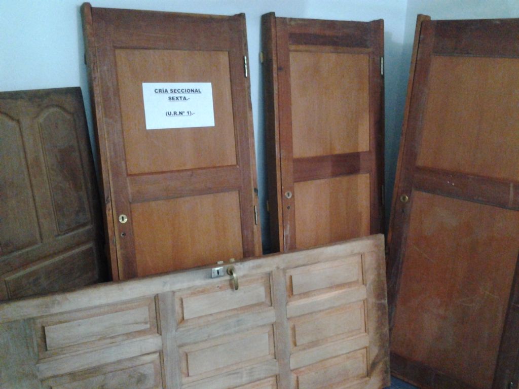cuatro puertas de algarrobo con sus marcos correspondientes, y dos paneles de
