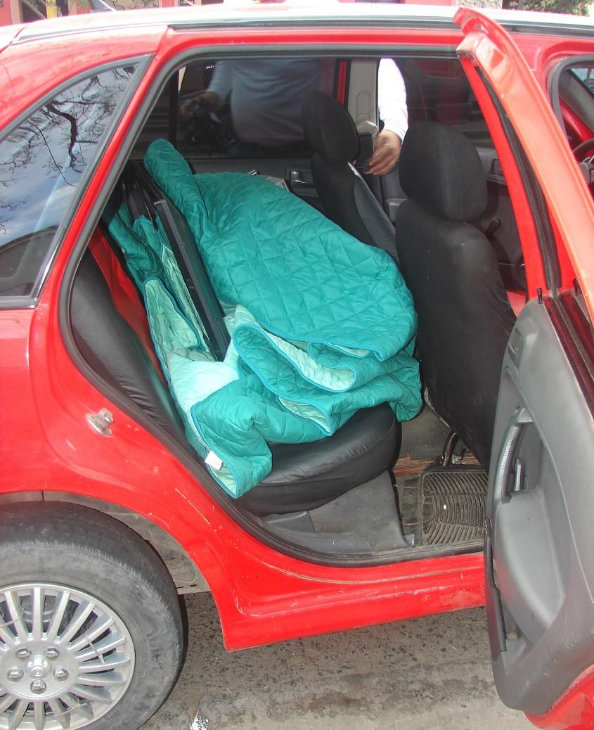 También detuvieron a un automóvil Volkswagen Gol, (HGK-704) color rojo, en el que llevaban 1 microondas marca Atma, de color gris, 1 televisor LCD 32”, de color negro, 3 controles remoto color gris, 1 celular Samsung S-3 color blanco, 1 protector para celular de silicona color rosado, 1 destornillador color verde y 1 cuchilla tipo carnicera color amarillo.