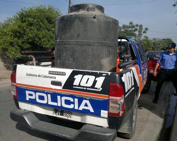 De allí, los uniformados secuestraron 1 tanque plástico de agua de 1.000 Lts., de color negro, que estaría relacionado con un ilícito que fue denunciado en ese Precinto Judicial hoy a las 14. El elemento secuestrado, fue trasladado a la dependencia policial a disposición de la Justicia interviniente.