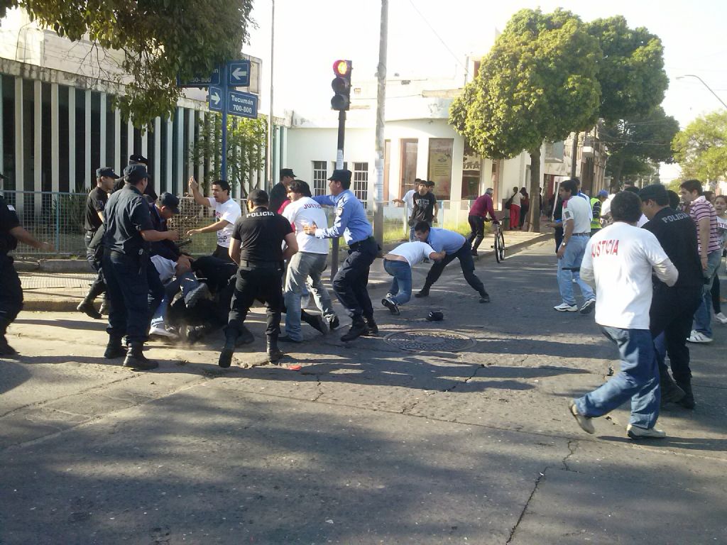 Martín y Tucumán, donde se llevaba a cabo la manifestación de familiares y