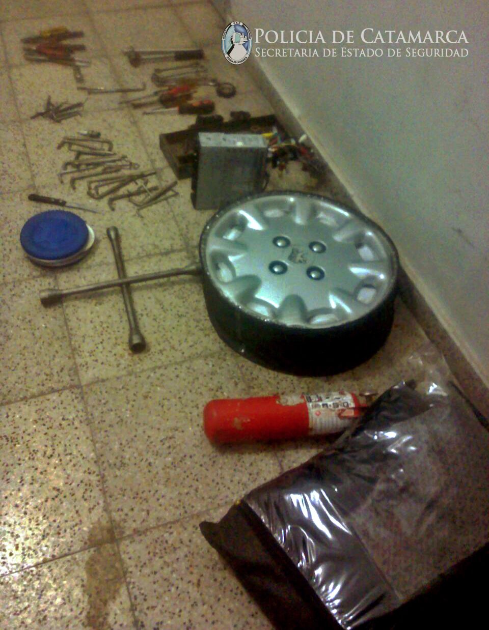 Antes de huir, dejó abandonado en el lugar un matafuego, una