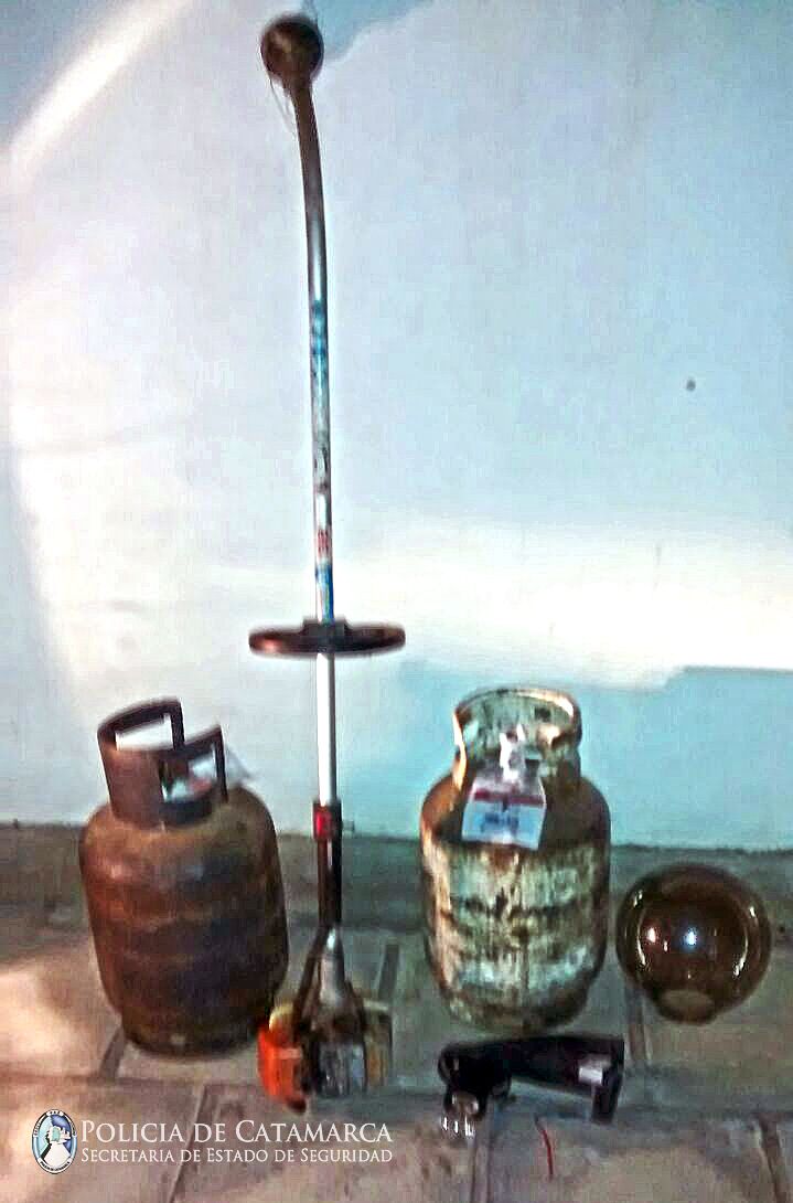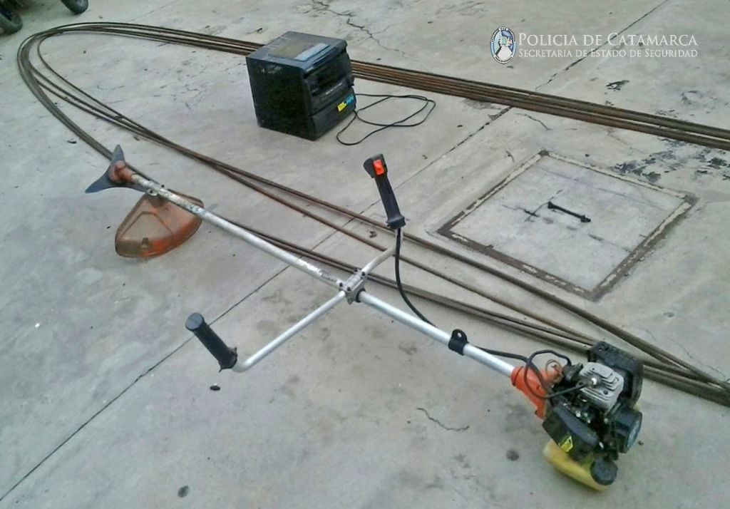caloventor, una motoguadaña, barras de hierro y otros elementos, por lo que