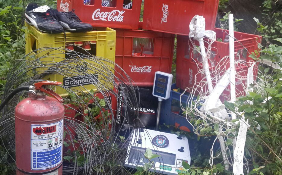 bebidas (gaseosa y cerveza), una balanza electrónica, un matafuegos, un rollo