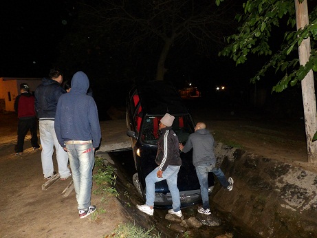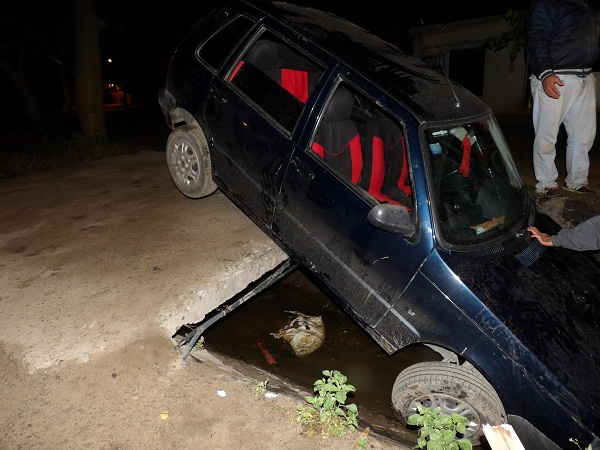 horas, un auto cayó en forma involuntaria al canal que pasa por el pasaje 12 de