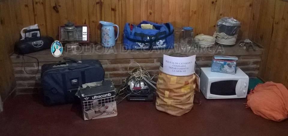 Hoy, a las 9:30, los efectivos de la Comisaría de La Merced tomaron conocimiento, a través de una denuncia radicada por una mujer de apellido Barrionuevo, que en una vivienda ubicada en la calle Cura Vera S/Nº personas desconocidas habrían sustraído 1 Radiograbador, 2 estufas, 1 procesadora, 1 TV marca Filiphs, 1 farol, 1 lavarropas, 1 Microondas, 1 licuadora, 1 Nebulizador, 1 videocasetera, 1 jarro de cerámica, 1 cubrecama, 1 valija, 1 bolso de color azul, varias prendas de vestir, utensilios de cocina , herramientas, mantelería y alargadores.