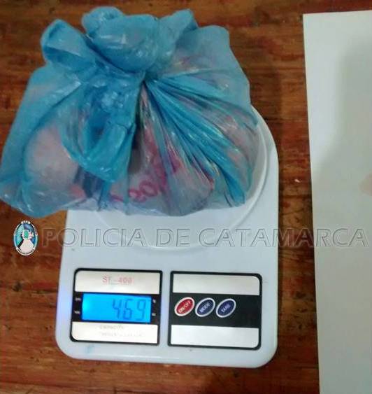 trozos compactados que arrojaron un peso de 469 gr. de marihuana, según lo