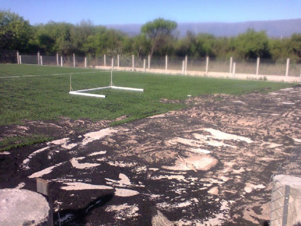 Según se supo, los ladrones se llevaron alrededor de 30 metros de cesped sintético, y también parte del alambrado perimetral que ya estaba instalado.