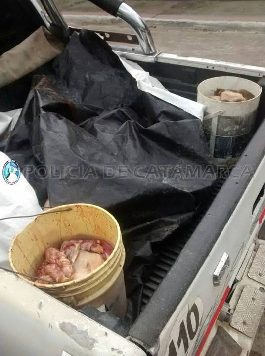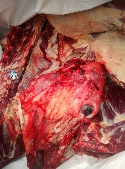 en la caja del rodado un animal vacuno faenado de aproximadamente unos