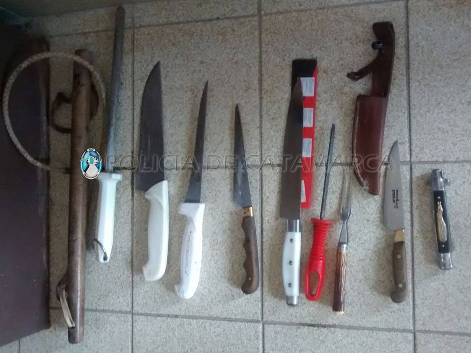 cuchillos, un cortaplumas, un látigo y dos chairas, y alojó a los sujetos en la