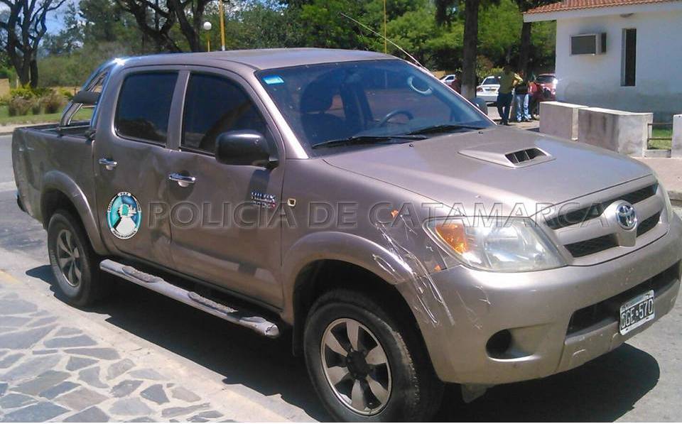 colisionaron con una camioneta Toyota Hilux (GGE-570), de color gris, al mando
