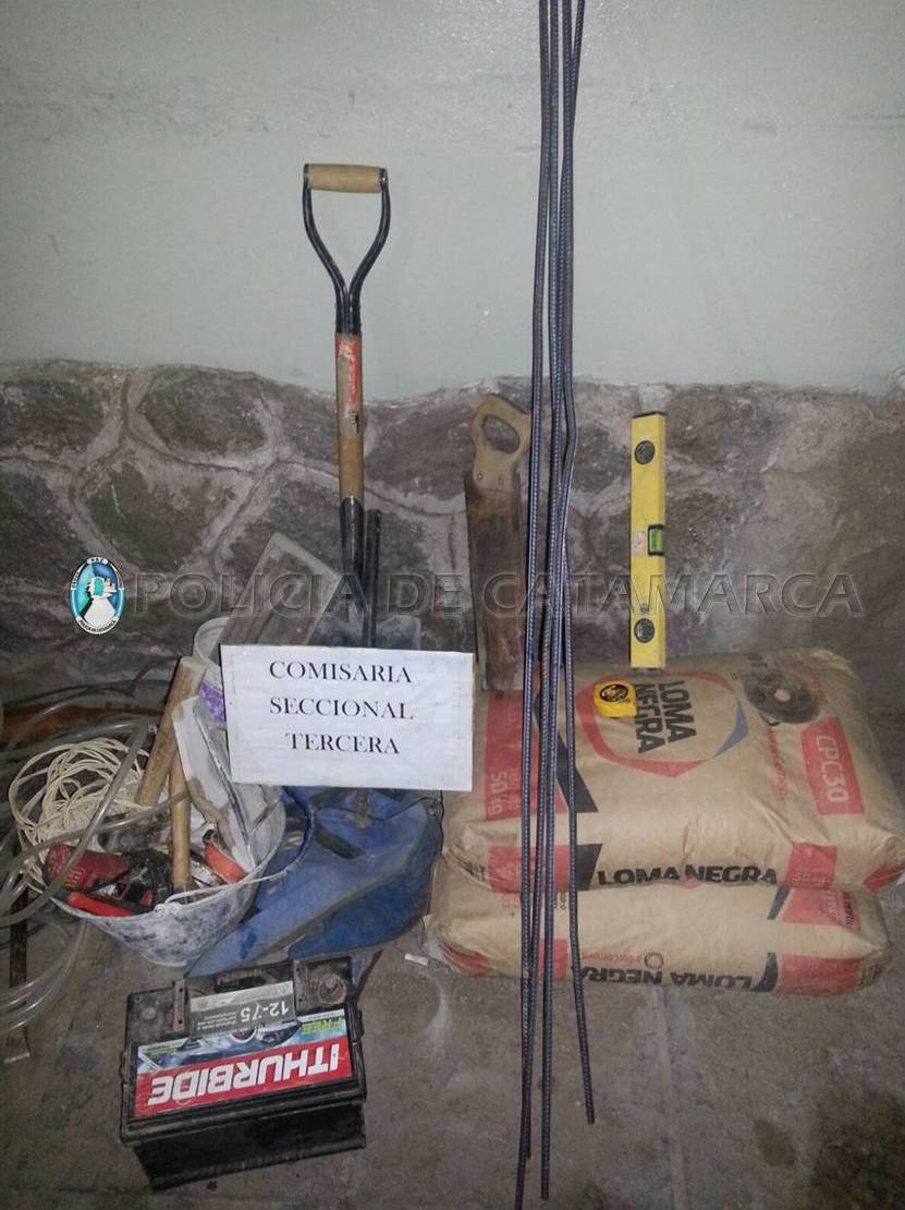 alargadores, serruchos, cintas de medir, amoladoras y 2 bolsas de cemento), no