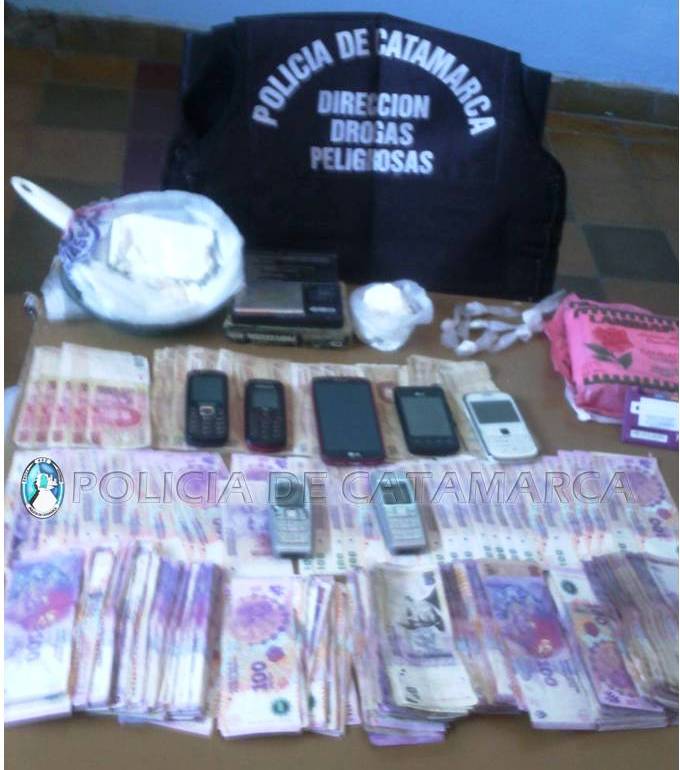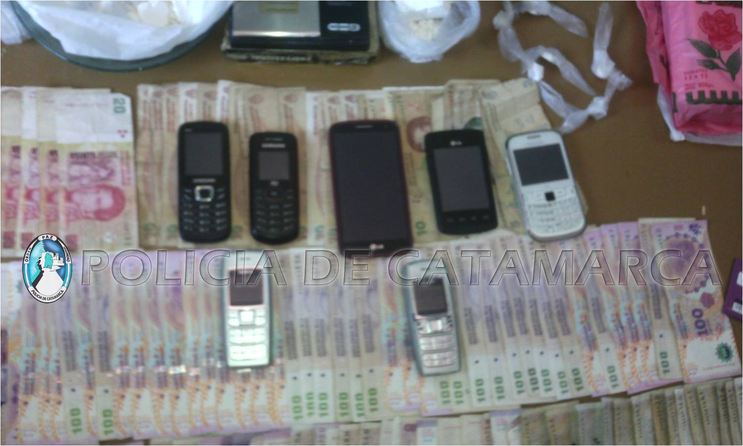 También se procedió al secuestro de elementos de corte, seis "bochas” de la misma sustancia, una balanza digital, siete teléfonos móviles de diferentes marcas y la suma de $44.152.