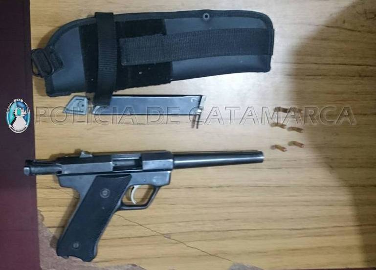 Hoy, a las 15:40, efectivos de la Comisaría 1° se constituyeron en la calle Rivadavia entre República y Esquiú, y aprehendieron a Daniel Omar Lujan (65), chofer del taxi Lic. N° 352, quien mantuvo una discusión con un hombre de 47 años de apellido Bordón, que manejaba un automóvil Chevrolet Lumina, (MQU-735) y lo amenazó con una pistola calibre 22, que contenía seis municiones en el cargador.