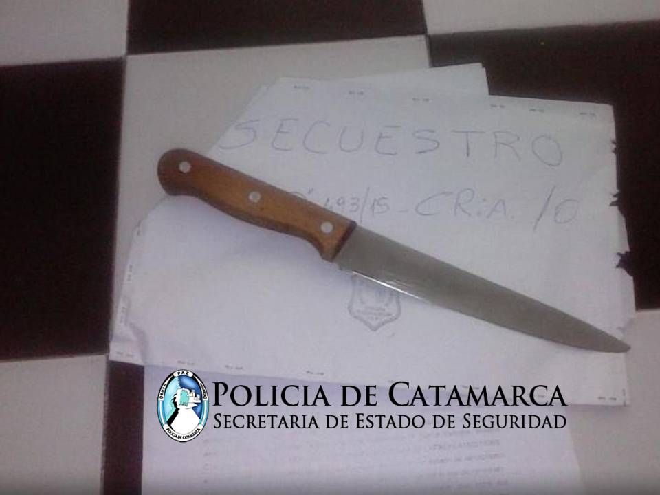 Cuando el personal interviniente pretendía identificarlo, sacó de entre sus prendas de vestir una cuchilla de cocina de aproximadamente 30 cm. de largo, y habría intentado agredirlos, por lo que fue trasladado a la dependencia policial en donde se labran la actuaciones de rigor.