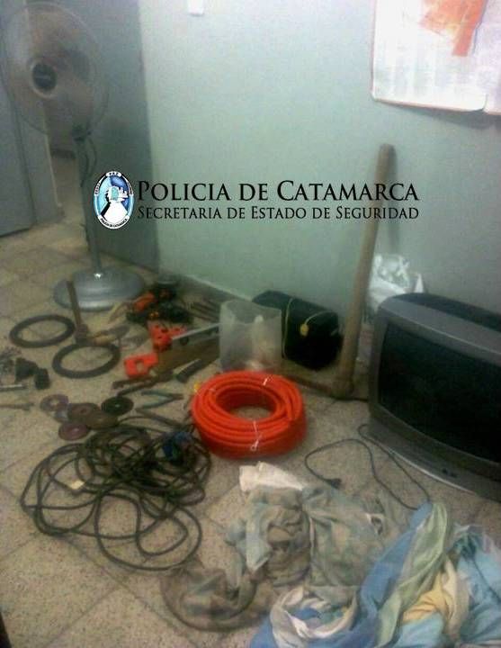 Tras realizar un rastrillaje en la zona, en un descampado ubicado a la altura de la Manzana "G” del Barrio mencionado, el personal interviniente encontró oculto entre la maleza: 1 radio grabador, 1 televisor, 2 sabanas, 1 ventilador de pie, 6 baldesde albañil, 1 amoladora, 1 taladro, 2 rollos de alambre, 1 serrucho, 2 cucharas de albañil, 1 fratacho, 1 nivel de mano, 1 maza, 1 machete, 2 tenazas,7 llaves de boca, 6 discos para amoladora, 3 destornilladores, 1 llave saca bugías, 1 corta fierro, 1 tijera de podar, 1 picota, 1 alicate, 1 cablealargador de 10 Mts., 1 rollo de caño corrugado, 1 bolsa con clavos, tanza, tornillos y varias mechas para taladro.