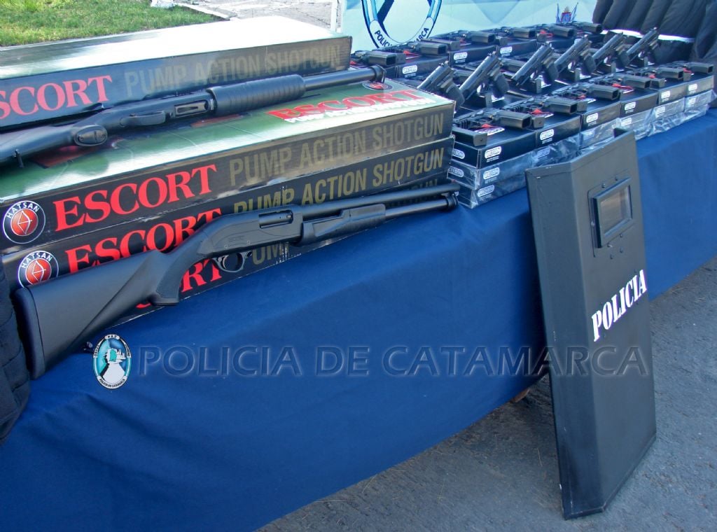antibalas, 160 equipos de comunicación, 8 escopetas marca Escort y 78 pistolas