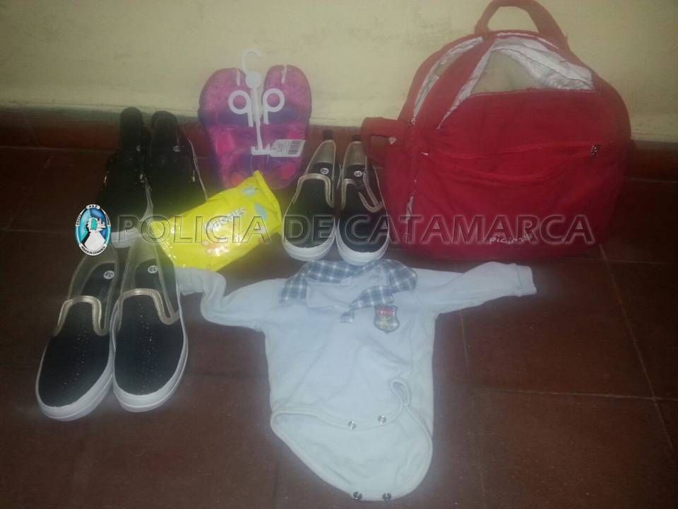 cuatro pares de calzado, una prenda de vestir para bebé, pañales descartables y