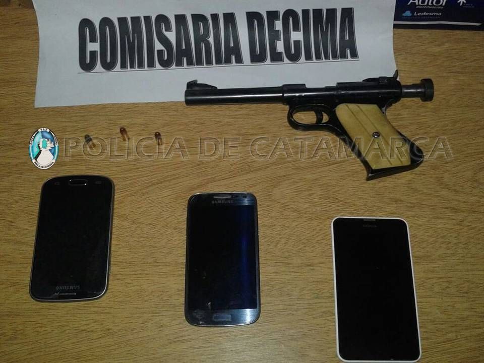calibre 22 con tres (3) proyectiles y tres (3) teléfonos Celulares de marcas