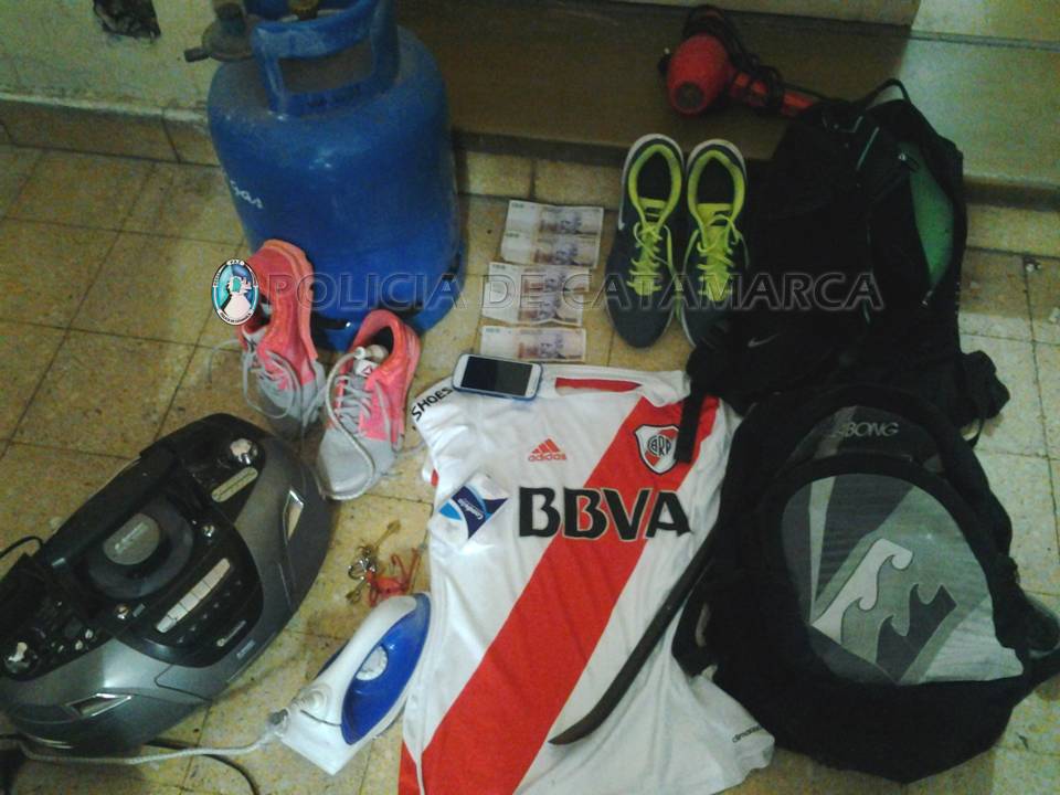 Al proceder a la correcta identificación de los individuos y a la inspección del vehículo, encontraron en el interior 1 radio grabador, 1 secador de cabello, 1 plancha, 2 pares de zapatillas, 1 teléfono celular, 1 garrafa de 10 Kg, 2 mochilas, 1 camiseta de futbol, y $5.000 en efectivo, de los cuales no pudieron acreditar la legítima propiedad y procedencia.