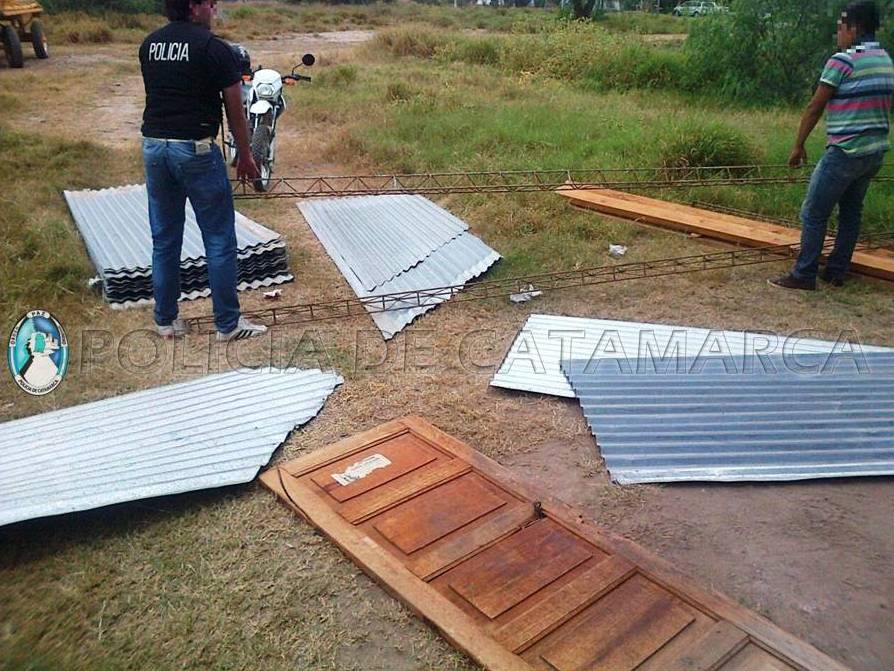 El personal policial interviniente secuestró 46 chapas de zinc, 1 puerta de madera, 4 tirantes de madera, y 5 columnas de hierro tipo cabriadas, las que estarían relacionadas con un ilícito denunciado en esa sede policial del Departamento Capayán, días pasados.