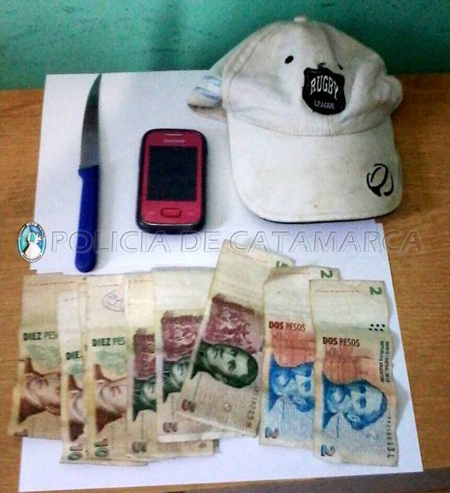 Al momento de la aprehensión, el individuo intentó agredir a los policías que igualmente lo redujeron. Entre sus pertenencias tenía un teléfono celular marca Samsung Galaxi Poket color rosa; $54 en efectivo, que eran propiedad de la damnificada; una gorra de color blanco; y un cuchillo de cocina con el que amedrentó a la víctima.