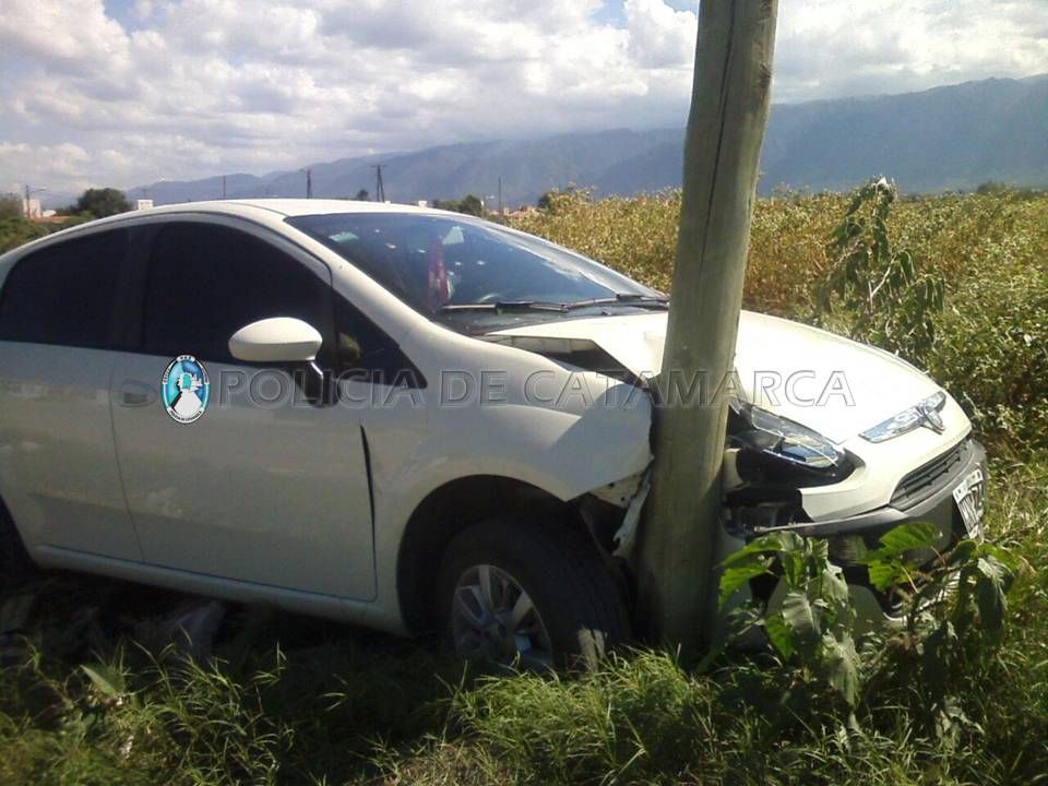 A las 13:50 de hoy, en inmediaciones al B° 100 Viviendas Sur, Alejandra Noemí Medina (44), que circulaba en un Fiat Punto gris, perdió el control e impactó contra un poste del alumbrado público.