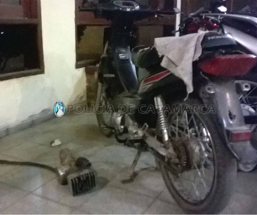 Los menores se conducían en una motocicleta Motomel 110 cc., de color negro, y llevaban un motor desarmado de otra motocicleta, del que no pudieron acreditar la legítima propiedad y procedencia.