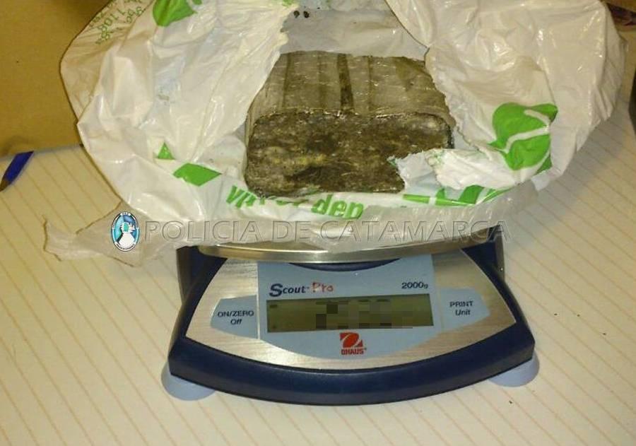 Mientras que en la intersección de las calles Copiapó y Oreste Juricich, en la propiedad de la familia Lopez , detuvieron a un hombre de 30 años e incautaron 120 gramos de la misma sustancia estupefaciente distribuida en dos ladrillos y en bochitas.