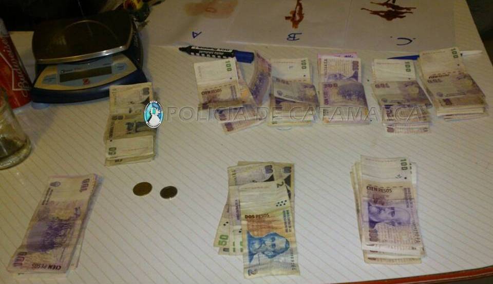 En una vivienda ubicada en el B° Jardin propiedad de la familia Carreras, detuvieron a dos jóvenes de 19 y 25 años y secuestraron $ 9.000 discriminados en billetes de baja denominación; 450 gramos de marihuana fraccionados en "bochitas " y en trozos de diferentes tamaños.