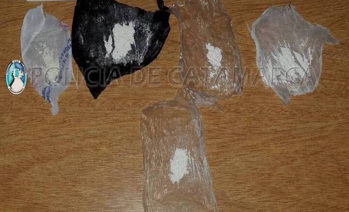 Tras la requisa correspondiente, se encontró entre sus prendas de vestir de uno de los sujetos, cinco envoltorios de nylon que contenían 4 Gramos de cocaína, conforme la prueba de campo realizada por personal de la Dirección de Drogas Peligrosas de la Policía de la Provincia.