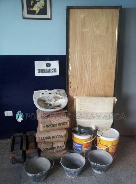 Tras constituirse en el lugar, los propietarios de los inmuebles entregaron en forma voluntaria: 3 tubos de metal de 5 Mts. de largo; 1 lavatorio de color blanco; 1 pileta de plástico de color blanco; 2 caños de PVC de 110 cm. de 5 Mts. de largo; 2 bloqueras de molde tamaño 15; 2 tachos de membrana liquida de 20 Lts., marca SIKA; 4 bolsas de cemento; 1 amoladora marca Bosh de color verde; 2 chapas de zing, una de ellas de 4 y otra de 2 1/2 Mts; 3 baldes de albañil; 1 martillo; 1 martelina; 1 puerta placa de madera; 1 rollo de manguera de plástico de color negro.