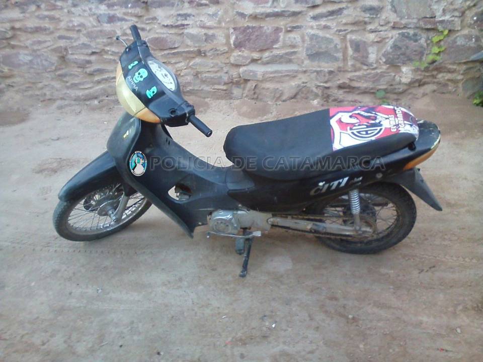 Appia City Plus 110 cc., de color negro, dos hachas, una botella con nafta y un