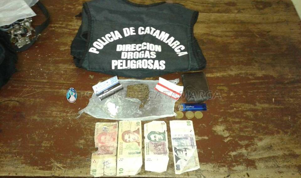 Allí encontraron en el interior de una mochila que llevaba un sujeto de 20 años, un trozo compacto y un envoltorio de nylon que contenían 40 Gr. de Marihuana y 3 Gr. de Cocaína.