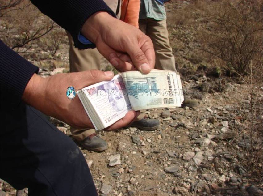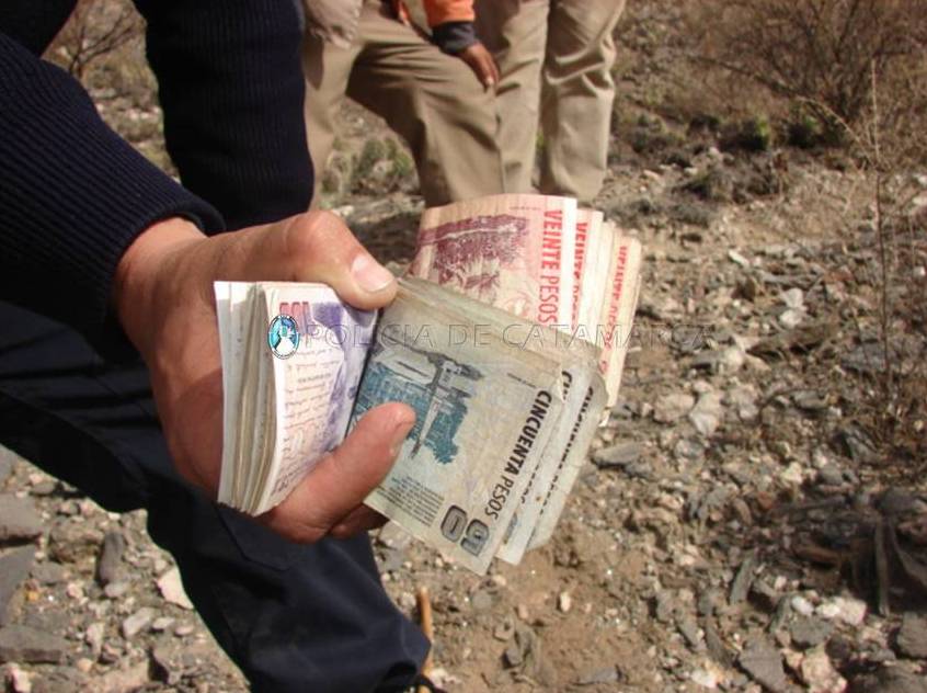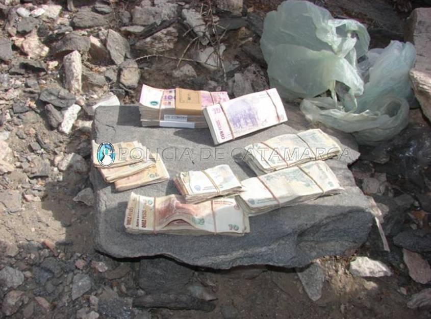Tras un rastrillaje en inmediaciones de las Ruinas Arqueológicas de la localidad de Fuerte Quemado, el personal interviniente encontró en el interior de una bolsa de nylon que estaba enterrada en el lugar, la suma de $50.000 que quedaron en calidad de secuestro.