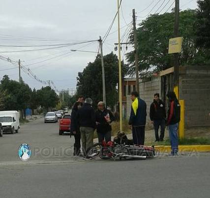 Hoy, a las 12:25, en la intersección de Avenida Acosta Villafañe y calle Solidaridad y Altruismo, una motocicleta Motomel 110 cc., (723-DHP) al mando de Jacinta Elisabeth Pizarro (43), oriunda de la Provincia de Santa Cruz, colisionó con una camioneta Peugeot Partner (MAP -522), conducida por José Antonio Luna Colombres (66).