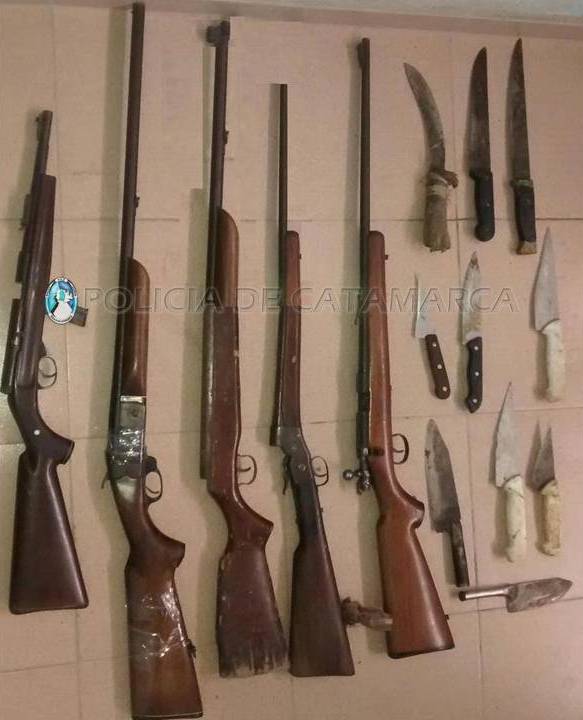 de dos carabinas calibre 22, tres escopetas calibre 16 y diez cuchillos tipo