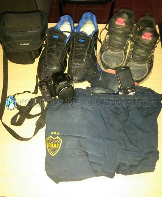 Fujifilm, un pantalón de gimnasia Nike, un teléfono celular Samsung GTC 3510,
