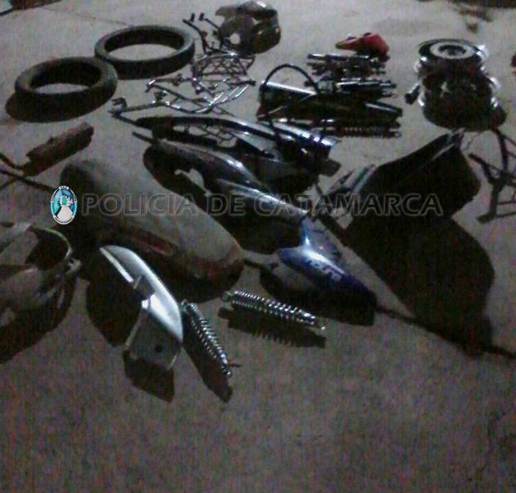 En viviendas ubicadas en el barrio Virgen del Rosario de San Nicolás de la localidad de Lampacito, y en una calle pública de Chañar Punco respectivamente, el personal policial interviniente secuestró gran cantidad de moto partes y una motocicleta Cerro 150 cc., de color negro, que estarían relacionadas con varios ilícitos perpetrados en la zona y que fueran denunciados en la sede policial, por lo que quedaron a disposición de la Justicia interviniente desde donde se impartieron las medidas a adoptar.