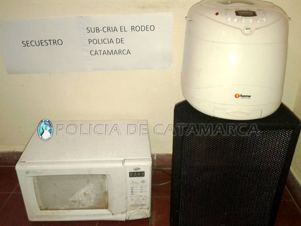 El personal policial interviniente, procedió al secuestro de un Bafle marca Pavi de color negro, un microondas Luft de color blanco, y una freidora eléctrica de color blanco, que estarían relacionados con un ilícito perpetrado en un domicilio, propiedad de una familia de apellido Romero, ubicado en inmediaciones al barrio 15 viviendas de la Villa de El Rodeo.