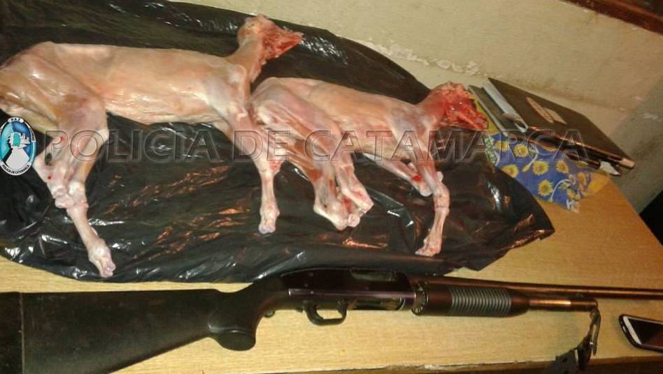 El procedimiento se realizó mientras efectuaban un control de rutina, frente al destacamento que tiene la División en la Loc. de Albigasta Departamento El Alto. La pareja al momento de ser identificada, trasladaban una bolsa de nylon con dos animales caprinos faenado envueltos en una campera, y una escopeta calibre 1270 marca Maverick modelo 88, sin documentación correspondiente.