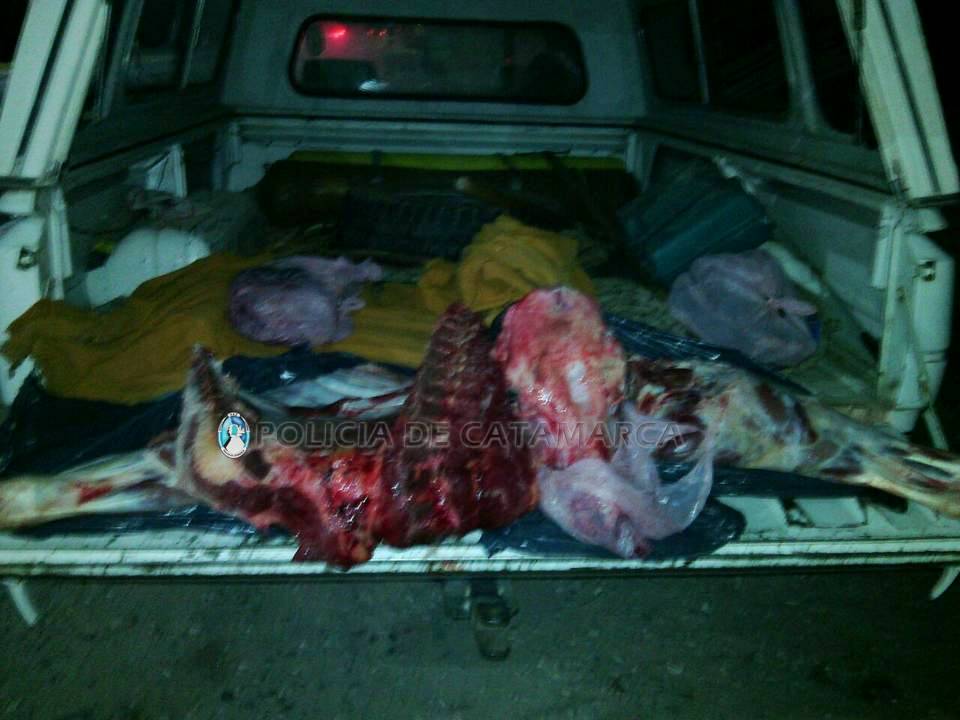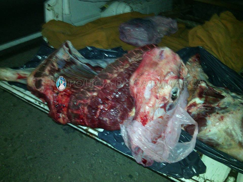 En la caja del rodado encontraron bolsas de nylon que contenían unos 50 Kg. de carne vacuna la cual carecía de las medidas de higiene y cadena de frío correspondientes. Se dio intervención al personal policial de la División Abigeato, quien labró las actuaciones de rigor.