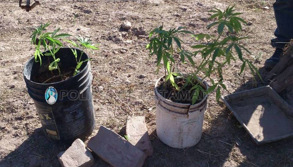 Cannabis Sativa en masetas de aproximadamente medio metro que se hallaban