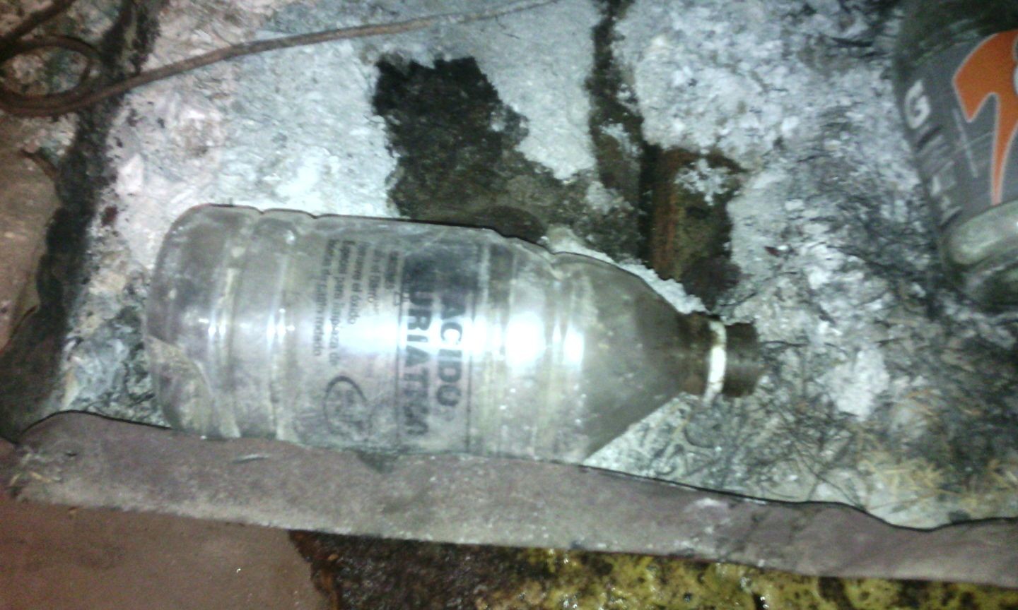 botellas conteniendo ácido muriático, un revólver calibre 38 con una munición