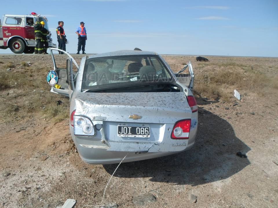 A las 15:30 de la tarde de hoy, en la Ruta Nacional Nº 60, a unos 5 Km. del Puesto Caminero de Las Salinas, Dpto. La Paz, se produjo un siniestro vial.