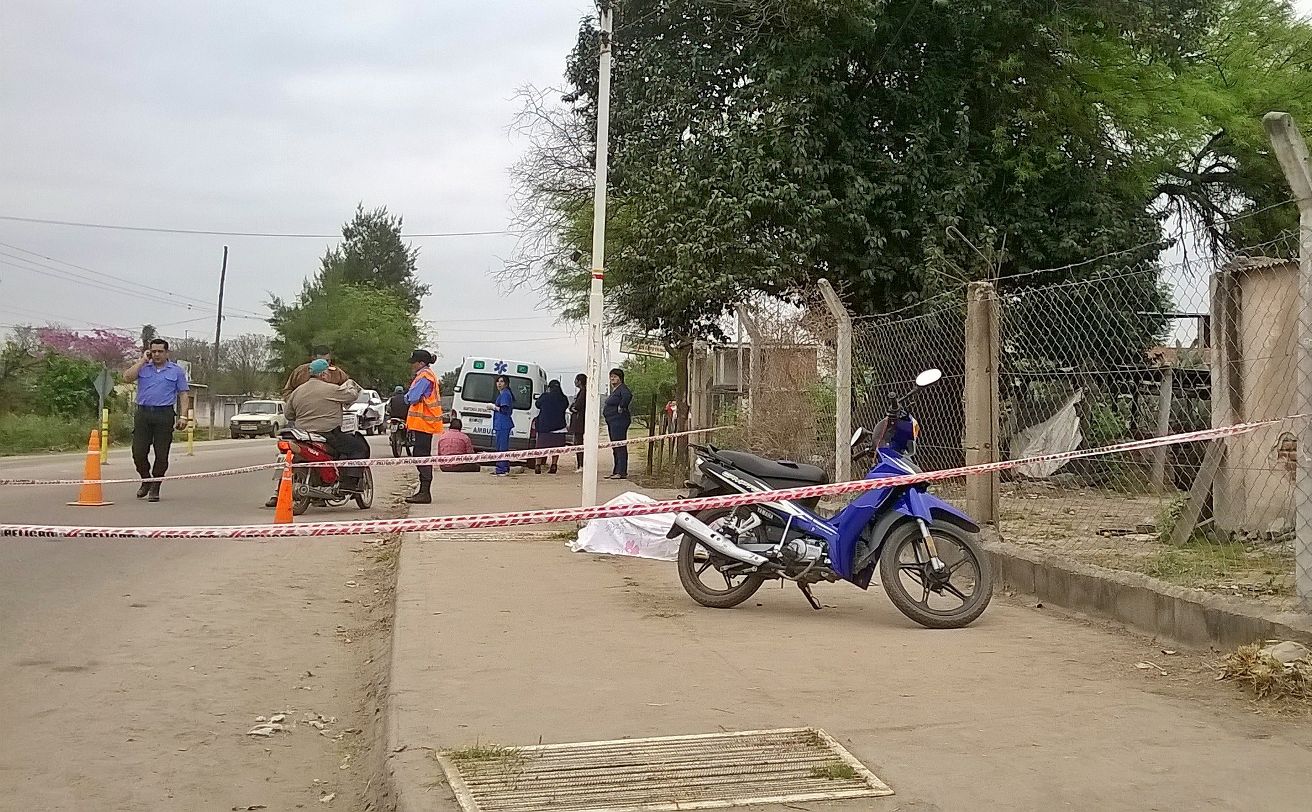 estrellando contra una tela metálica e impactando su cabeza en la cinta asfáltica.