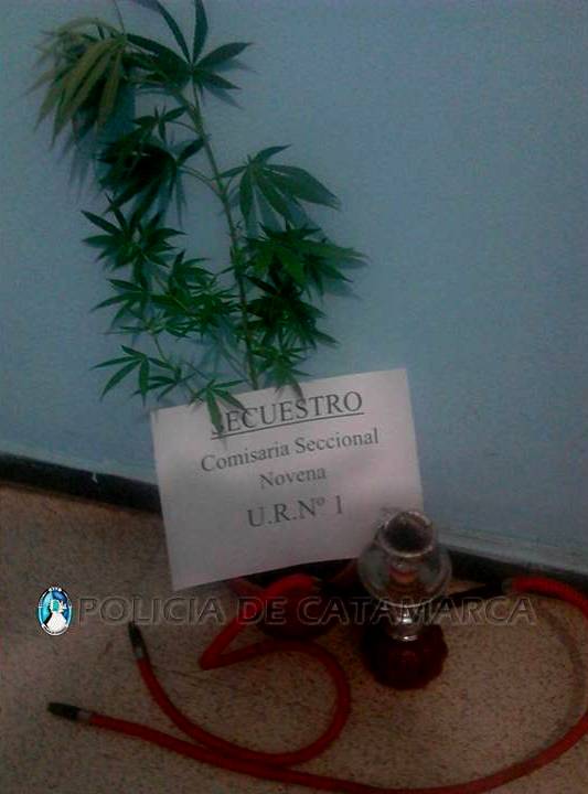 Asimismo, y mientras se desarrollaban las tareas de rigor, el personal policial interviniente encontró oculto en el interior de un tacho de 200 Lts. una planta de marihuana de aproximadamente unos 60 Cm. de alto, que estaba siendo cultivada en el fondo de la morada.