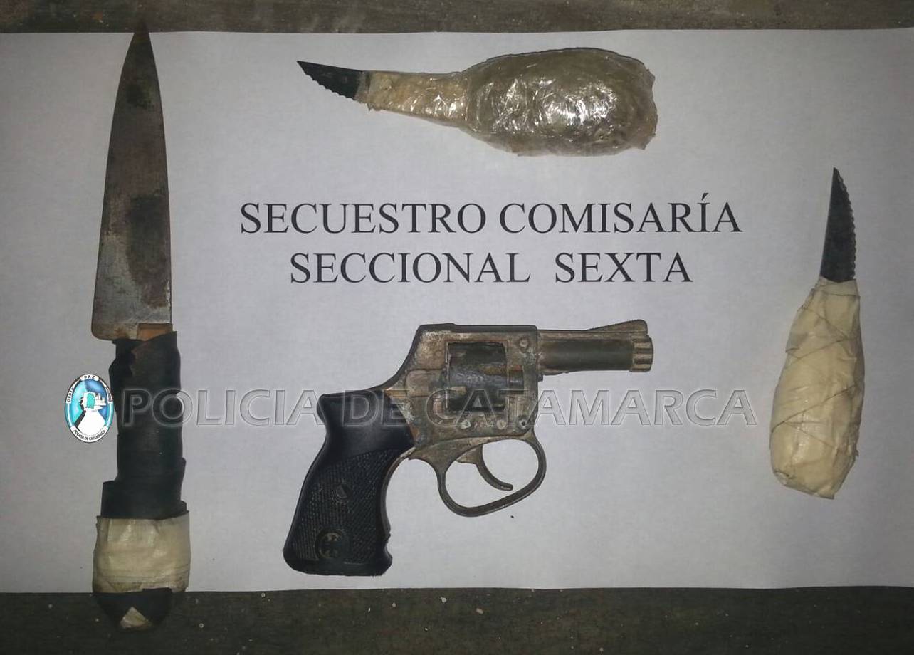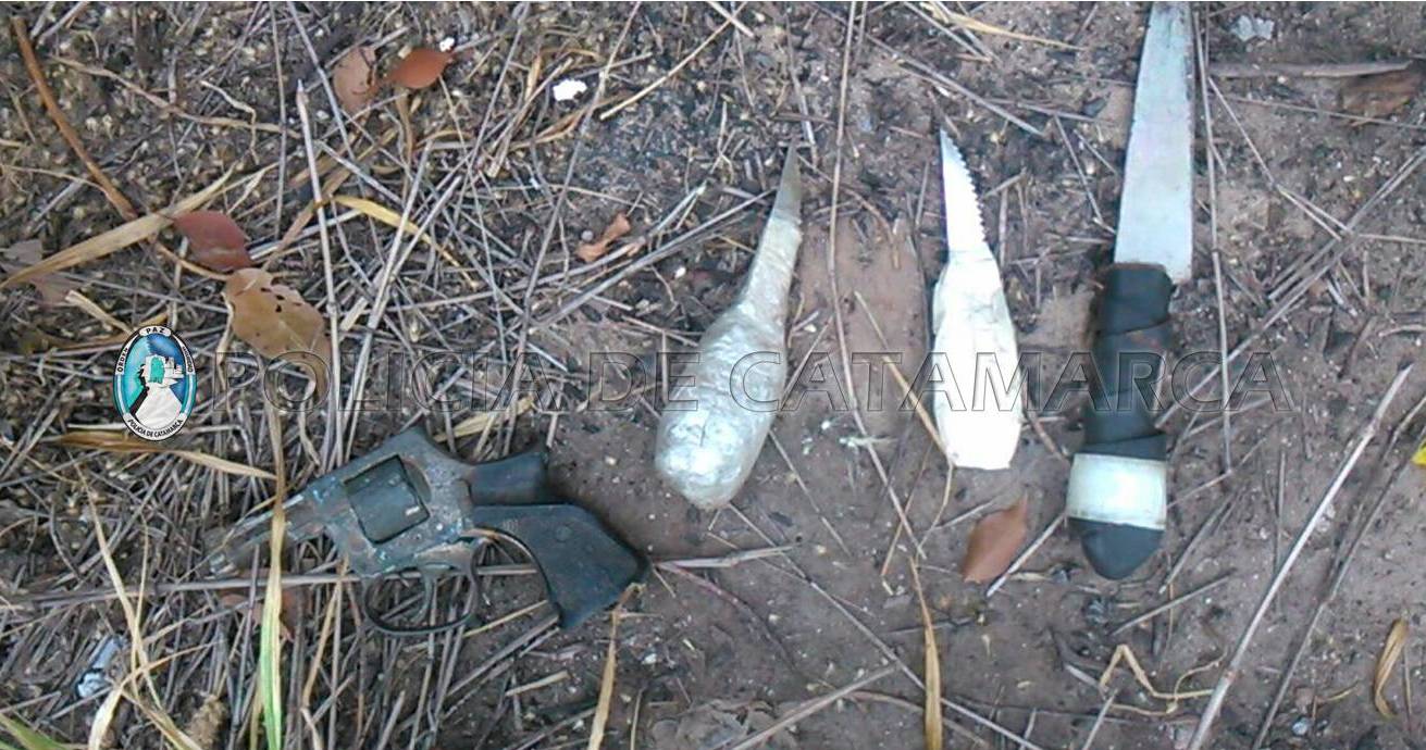 A las 11:50 de hoy, efectivos de la Comisaría 6° se constituyeron en un descampado, ubicado en el B° Miyashiro, donde un hombre de apellido Páez (67) que realizaba trabajos de albañilería en una vivienda colindante, encontró una bolsa que tenía un revolver calibre 22, y 3 cuchillos armados, tipo“tumberos”.