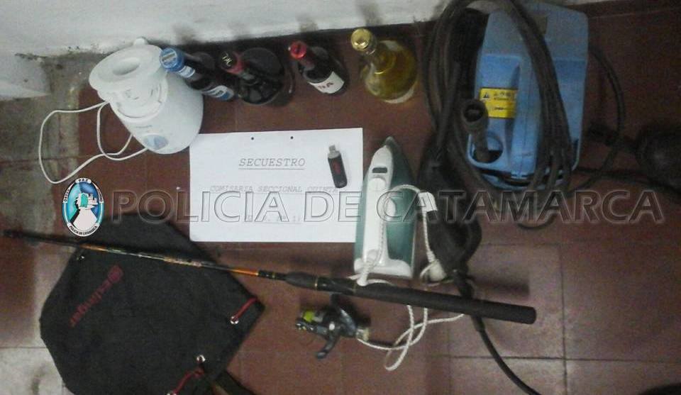licuadora, una caña de pescar, un pendrive, y cuatro botellas de bebidas