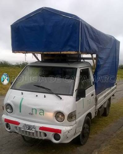Al verificar el rodado, se comprobó que era un camión Hyundai H-100, (DVD-756), de color blanco, con un toldo de color azul, que había sido robado a las 00:30 de hoy en calle Esquiú al 900 donde estaba estacionado, según consta en la denuncia radicada por el propietario en la Unidad Judicial Nº1.
